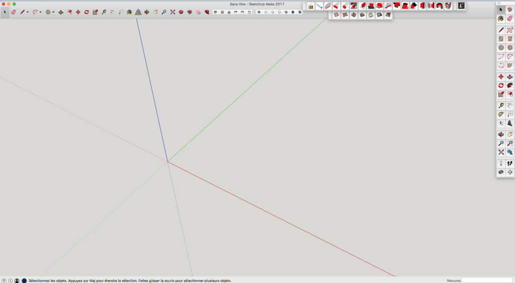 Voici donc mon interface sketchup, elle n’a rien de particulier hormis mes extensions de plugin: