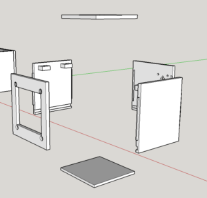 Je n’ai pas fait d’impression écran des différents moments de la modélisation, en revanche voici le résultat final sous skp et différentes vues de la box :