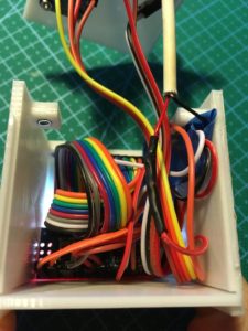 Je suis donc un peu déçue de ne pas avoir réussi à gérer ce petit jour de suite sans modification. L’assemblage à blanc était bon mais avec les composants c’était un peu moins simple. Peut être avons nous mis trop de câbles (ils sont long, je pense qu’avec des câbles moins long, le problème ne serait pas présent).