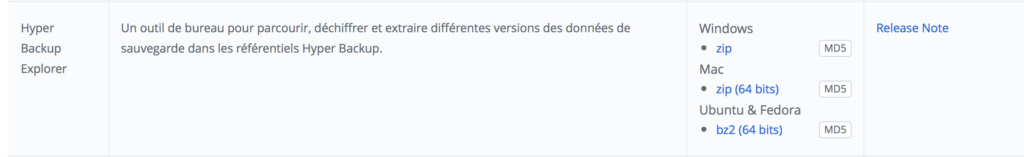 Ensuite, allez sur le centre de téléchargement synology et choisissez votre modèle de Synology puis rechercher Hypervault backup explorer sur la page. Télécharger alors l’application suivant votre plateforme.