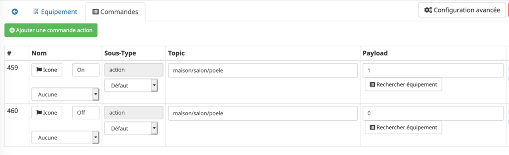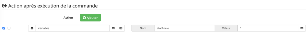 Sur chaque action, dans les paramètres supplémentaires, j’ai ajouté une action après exécution de la commande pour modifier une variable avec l’état du poêle.
