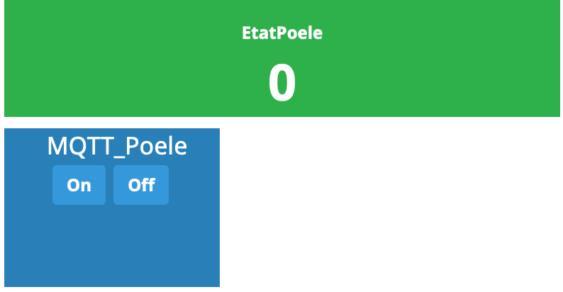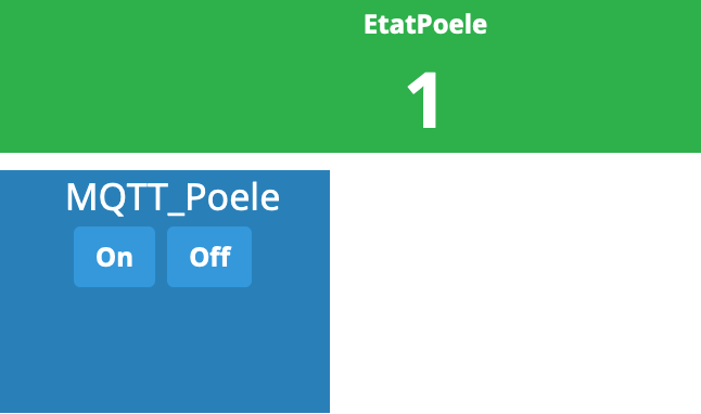 Et donc, sur la page d’accueil, on retrouve un widget pour la partie MQTT On/Off et un widget avec le statut du pôele.