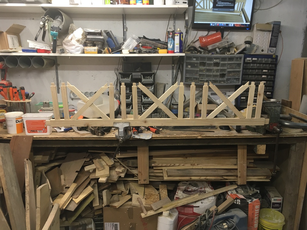 Il se compose de chevrons qui traînaient ici et et là dans le terrain et d’un bastaing que j’avais dans l’atelier qui était normalement destiné à une tête de lit mais tête de lit trop large donc il ne servirait jamais…