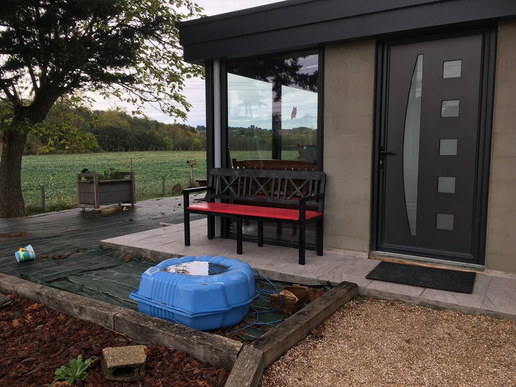 Pour profiter de l’extérieur, on voulait un banc ! Ce banc serait plein Est! Idéal tôt le matin pour profiter des levers de soleil ou tard le soir en été pour se mettre au frais !