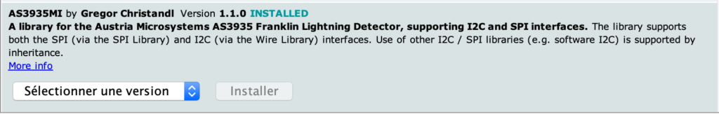 Pour commencer, on va installer la librairie AS3935MI de Gregor Christandl qui marche directement sur Nodemcu. Un grand merci à lui. Les sources sont sinon ici.