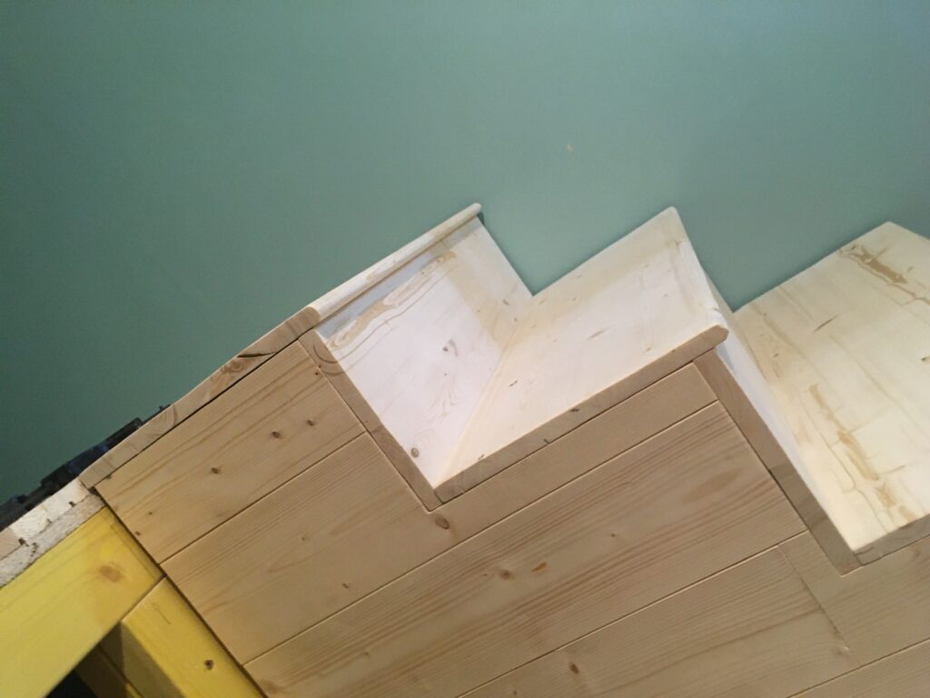 Une fois la structure réalisée, j’ai attaqué le bardage de l’escalier pour ensuite finir par les marches et contre marches.