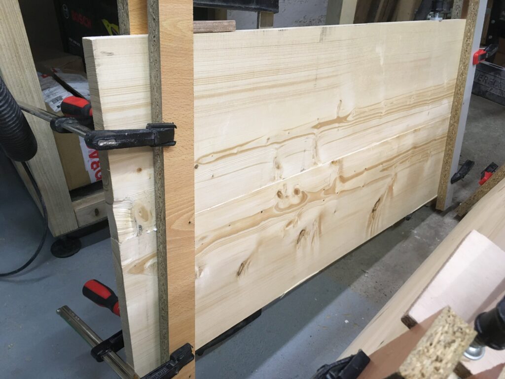 J’ai effectué un premier passage à la ponceuse à bande grain 80, puis un second au grain 120.