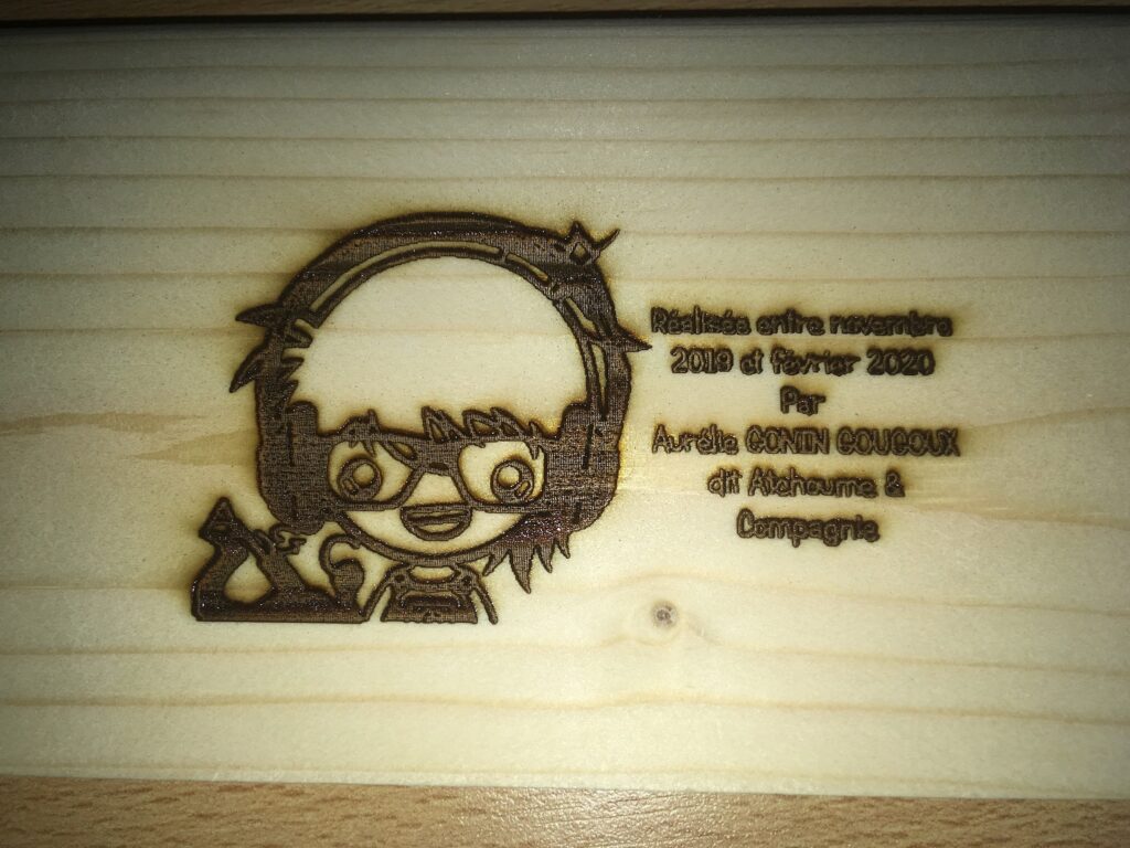 La colle du ruban ne collant pas sur le bois, j’ai opté pour la glue, mais là aussi ce fut un échec. J’ai fini par coller le ruban à la colle chaude simplement.