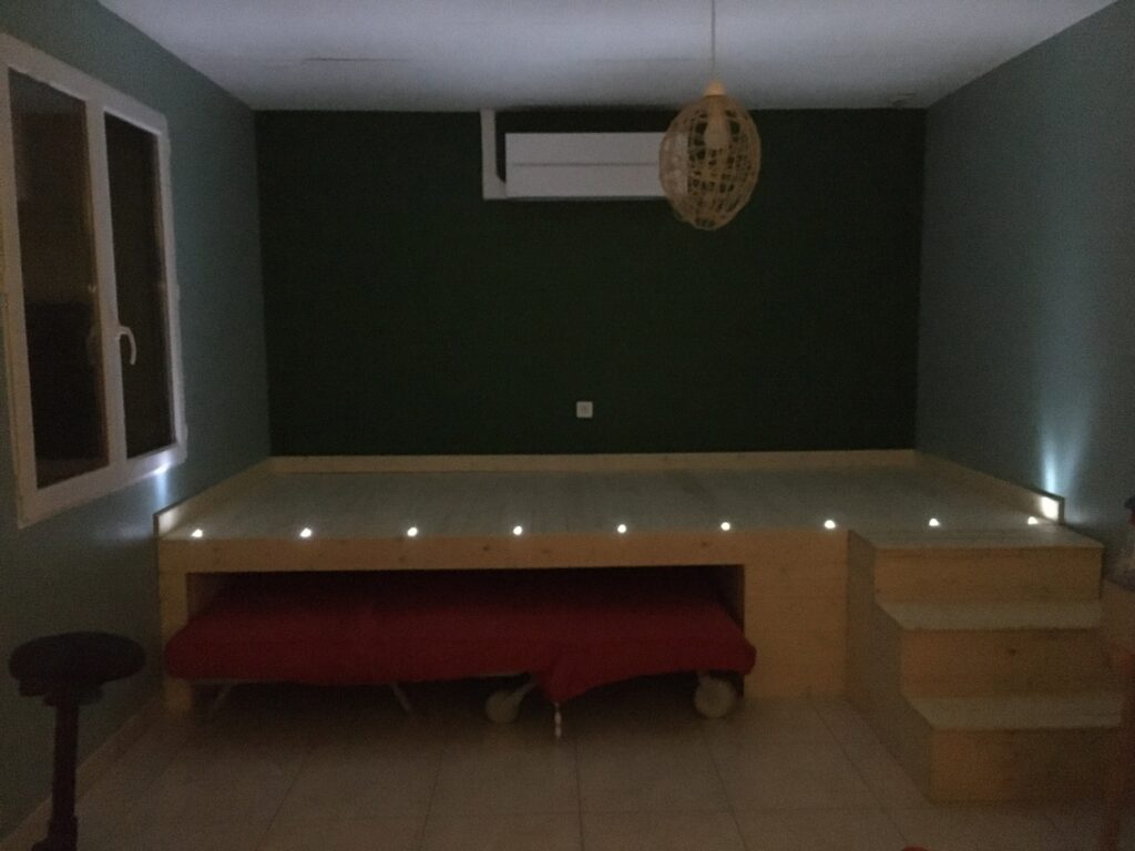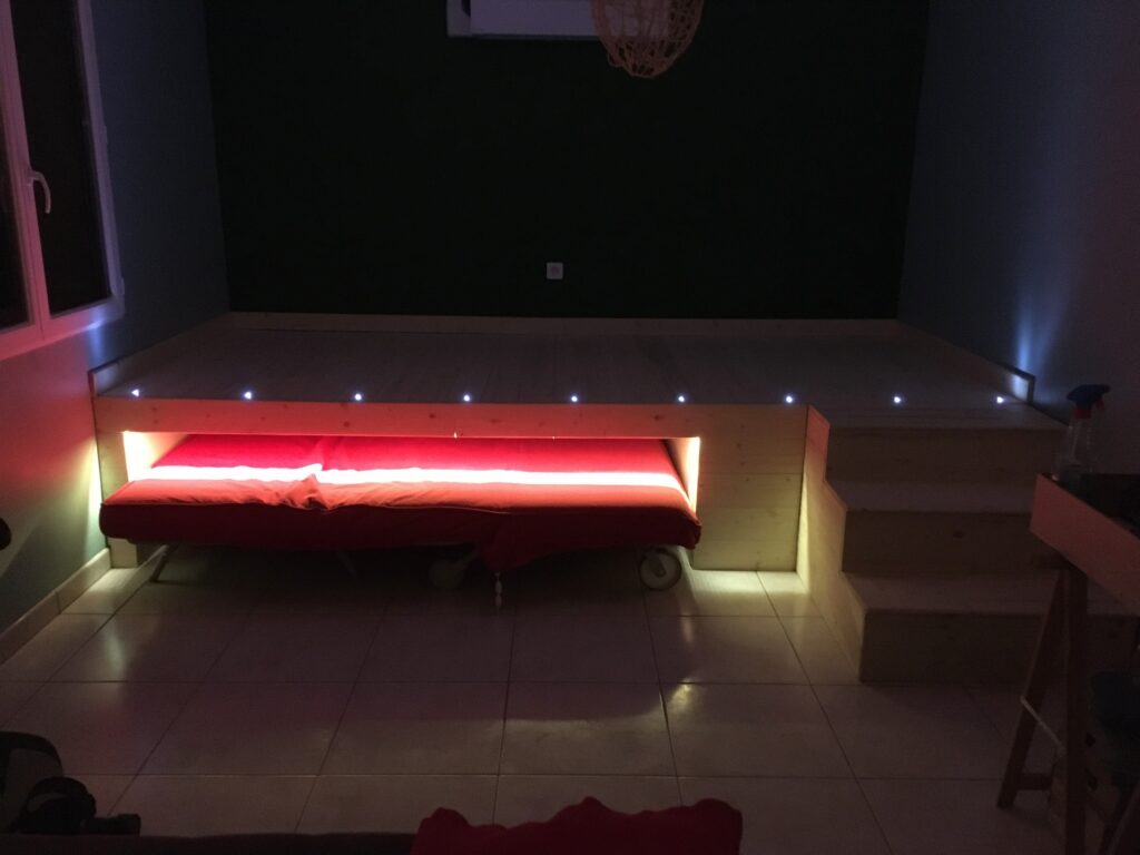 Le bardage et son éclairage étant en place, je peux continuer à avancer et envisager de démarrer la finition de cette estrade!
