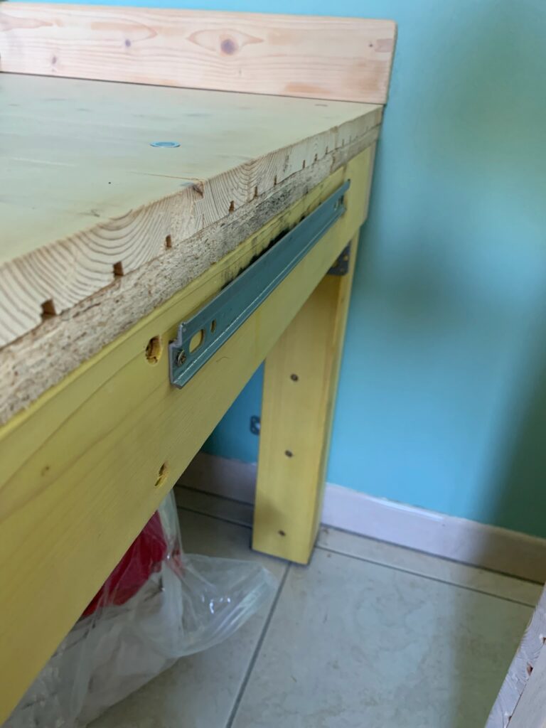 J’ai trouvé une astuce plutôt simple permettant de mettre et d’enlever l’escalier. En effet, il me faut un accès au dessous où sont câblés les spots et raccordés à l’électricité.