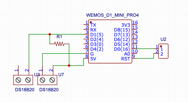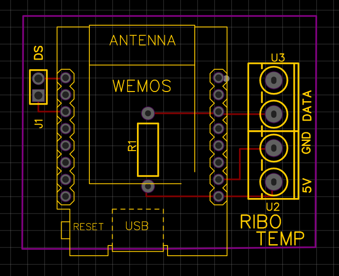 Alors que j’ai pas mal de sondes de températures ici et là, j’en avais marre de refaire des montages à la volée à chaque fois. J’ai donc fait un schéma puis un pcb que j’ai fait tirer pour pouvoir le ré-utiliser.