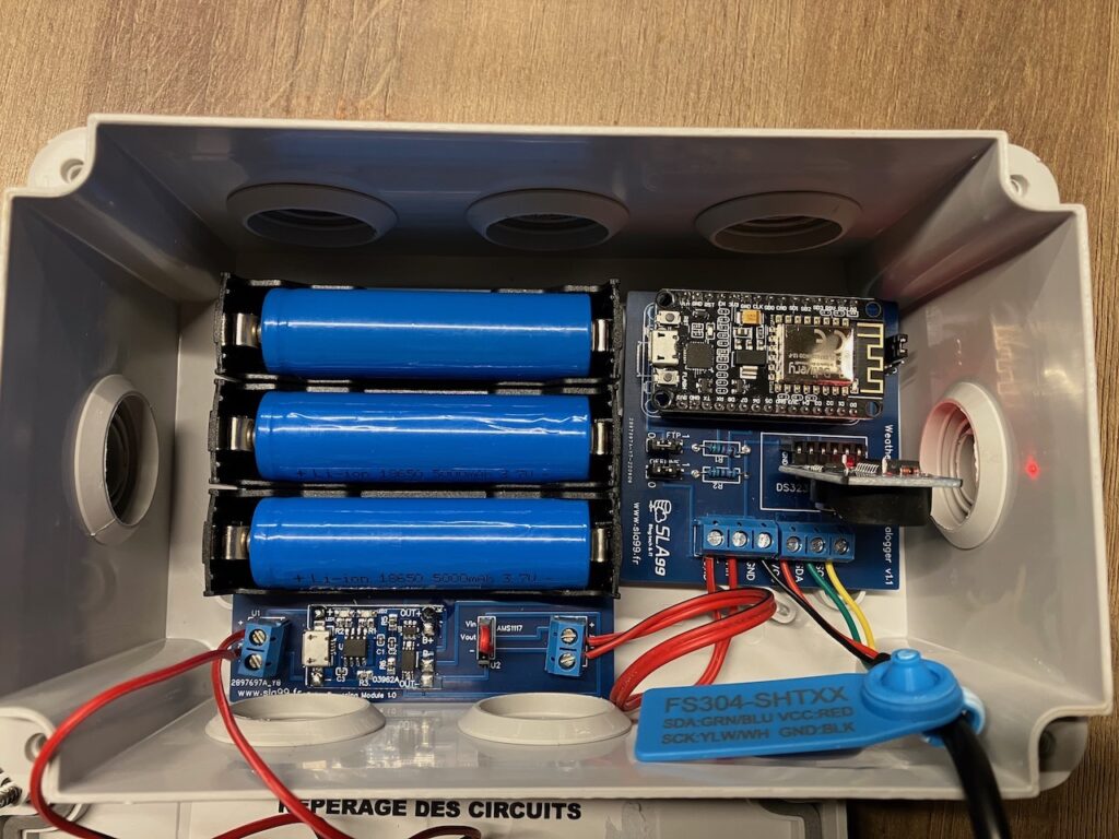 Enfin, le module tourne en deep sleep, c’est à dire qu’il ne se réveille qu’à intervalles réguliers pour récupérer ses données et les enregistrer avant de se rendormir pour économiser l’énergie. Un pas de 5 min me parait suffisant pour historiser des données intéressantes. Si les batteries tiennent bien le coup sur les périodes d’hiver, on pourra voir à descendre à 2 min voir 1min pour une précision maximale (mais plus consommatrice en énergie).